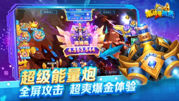 集结号捕鱼游戏由集结号娱乐中心打造,让玩家可以体验真正的3d捕鱼手游,玩家在更加优秀的游戏画面之中可以体验更多无套路的捕鱼玩法,海量boss让玩家可以捕个过瘾,最正宗的捕鱼玩法快来体验吧!