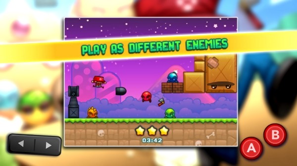 -- 游戏采用了左右移动按钮,操作上没什么难度,上手容易,但想要全三星通关还真不太容易。被马里奥摧残许多年的小怪们,举起你们的反抗的大旗,翻身农奴把歌唱。