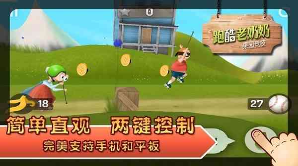 跑酷老奶奶是一款超级好玩的横版躲避动作游戏,故事是关于史密斯奶奶为了追回被偷的苹果,穿上了旱冰鞋,在城市、农村甚至办公室里飞驰,一路躲避障碍物,完成各种特技跳跃。游戏画面简约可爱,操作简单,只有两个按键就能轻松上手,非常适合在手机或平板上玩。