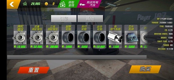 -- 游戏中玩家也可以对车身、发动机、轮胎等部位进行自定义改装。