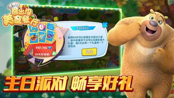 游戏完美还原了剧中的经典人物形象,聪明的熊大憨厚的熊二倒霉的光头强将悉数登场,你可以和他们一起来经营餐厅,打造属于你们的美食小镇,开启你的饕餮之旅,邀请你的小伙伴一起来体验吧!