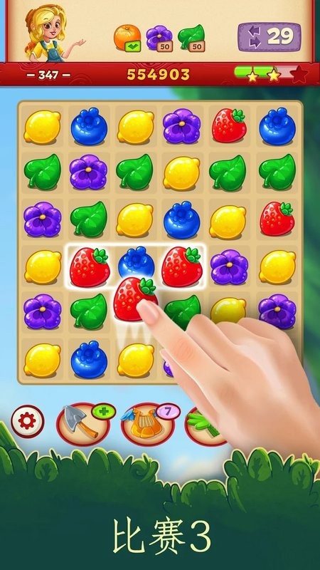 2、采用了很多经典的三消玩法,要耐心的观察和匹配不同的物品来进行消除