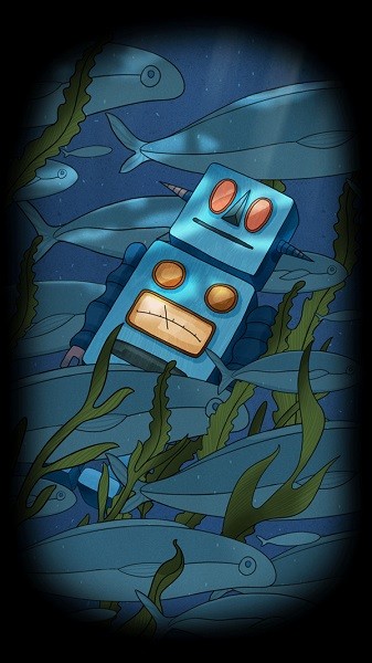 一直往下划通过对话来到第十一章,按红色按钮把飞镖投出去,并没有中到小机器人,于是我把机器人偷走,被丹尼发现,把丹尼推下湖,