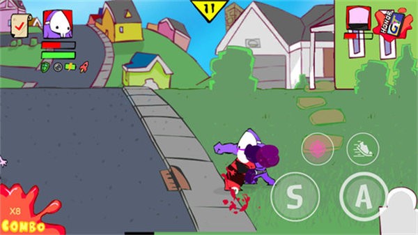 新手可以通过轻按A键(轻拳)和S键(重拳)攻击敌人,拾取道具或开启特殊能力来闯关。游戏有多张地图,每个场景都有独特的挑战,比如沙滩、游乐场等,玩家需要灵活应对各种敌人和陷阱。