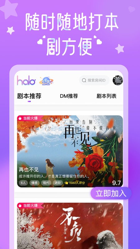halo剧本杀官方版带给大家全新的趣味推理app,小伙伴们可以根据自己的脑洞和推理来完成每一个阶段的推理,总结全面的细节,和万千同好一起解锁属于自己的剧本杀世界!