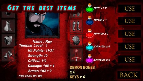 扮演鲁伊的角色,最后一位勇敢的圣殿骑士和著名的恶魔猎手。用你值得信赖的圣殿骑士剑武装起来,对抗史诗般的雇佣兵、骑士和强大的首领,征服最可怕的恶魔。