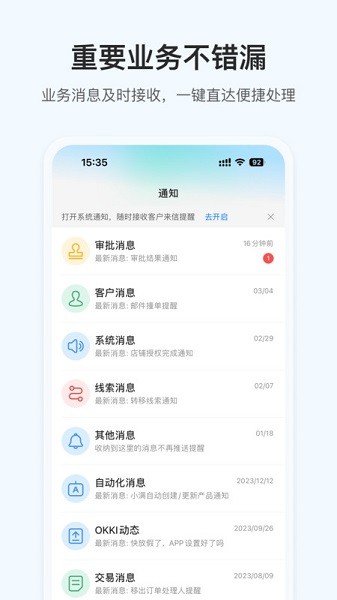 支持快速审批业务;日程的新建,查看与提醒;扫名片自动识别信息,快速新建客户。
