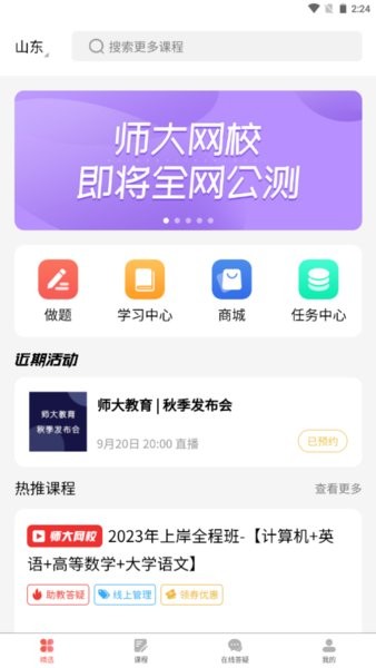 师大网校APP,是山东省内整合“互联网”与“教育”两大领域的专为专升本学子打造的在线学习工具,是师大教育旗下的在线教育平台,实现了线上线下相互结合的教学服务模式。师大网校APP融汇了师大教育多年来的教学方法,凭借学校强大的师资力量与教学资源,专注于专升本培训,课程涵盖了英语、计算机、高等数学、大学语文、政治五门学科。
