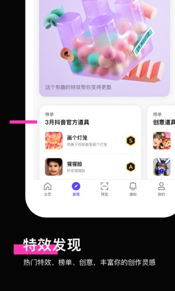 抖音特效开放平台,是抖音官方出品的一个短视频特效创作和交流平台。在这里你可以交流创作经验,制作特效上传到抖音给亿万用户使用。