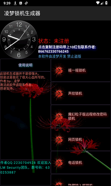 凌梦锁机生成器手机版是提供锁机功能的应用工具,体积十分小巧,操作简单,支持电话锁机、序列号锁机、隐藏输入框锁机、时钟锁机等多种方式,随你选择,自由设置,专注工作学习,减少干扰,保护隐私,提高效率,值得推荐!