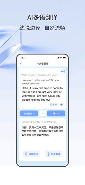 自动检测 | 无需手动选择要翻译的语言,应用能够准确判断用户输入的语言,为用户提供更加智能便捷的操作体验