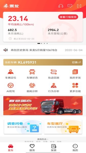 乘龙汽车之家为车主带来更多的汽车服务,通过软件可以随时享受更多的功能,还可以随时绑定车辆来查看车辆的状态,还有车辆的定位可以让车主随时找到自己在运营之中的多辆车辆。