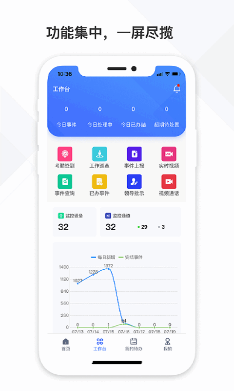 铁塔视联产品是一款功能丰富的办公管理软件,提供实时视频,云台操控,支持地图查找,一览无余,还可以在线签到、上报事件、巡查工作等操作,更提供领导批示、视频通话、事件查询等功能,办公状态一手掌握,操作简单又方便!