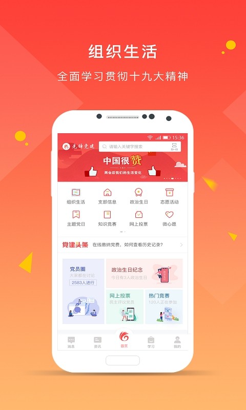 3、用户可以通过该软件进行内部党建学习,两学一做,参与党建活动中来