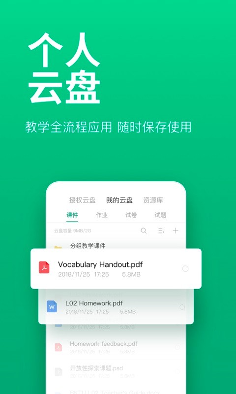 【多种教学课件】支持多互动式教学课件,包括带动画特效PPT、视频、音频、Word和PDF等,同时允许多个课件组合式教学,满足更多的教学场景。