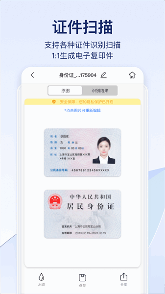 支持各种证件识别扫描,1:1生成电子复印件