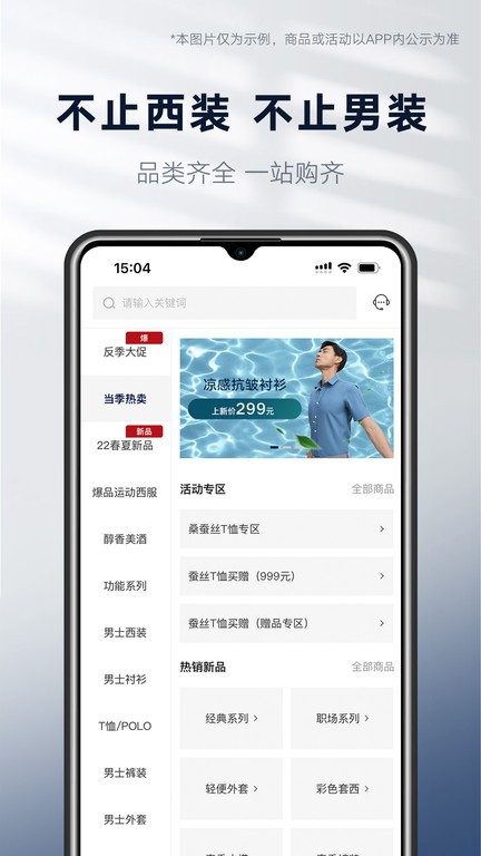 这款“衣邦人”APP提供高端服装定制服务,支持上门量体,用户可以在线预约并根据需求定制专属服装。主要以西装为主,但也包括裤装、外套、衬衫、T恤等。活动专区还有优惠商品可以选择。