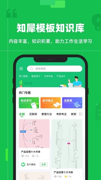 知犀的小清新颜值能够让人心情愉悦,简单的流程能助您专心思考,新手操作基本不需要学习,知犀模板中心还提供了3000+免费思维导图模板和知识笔记类思维导图,一般1分钟左右即可画出简单又漂亮的思维导图。