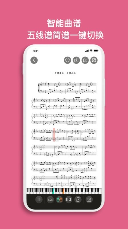 智能曲谱全新上线,拥有一键切换简谱,调节速度,变换曲调等多项智能功能。