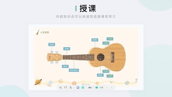 老师结合系统教材内容及课件进行课堂授课,还可结合音乐窝智慧电视通过手机/平板电脑控制投屏同步课件,丰富课堂互动效果,提升学员学习兴趣!