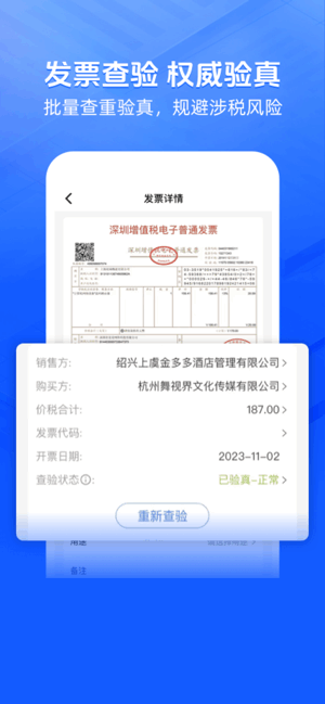 -无需输入税号,发票真伪“秒”查验,快速又精准;