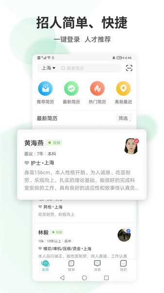 1、告别传统求职方式,直接和企业的负责人进行聊天对话,成功率更加高。