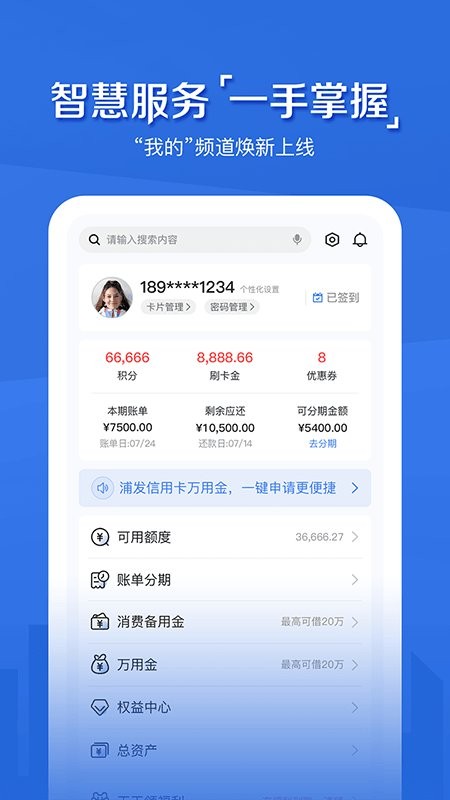 您可一键办理账单分期、自由分期、万用金申请并查询办理过的分期交易详情,让您尽数掌握,放心理财。