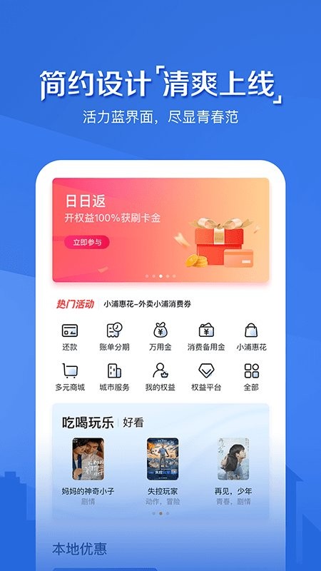 浦大喜奔,是一个金融生活方式。――浦发银行信用卡唯一官方app!该平台精心开设了精品推荐、小浦娱乐、小浦商城、小浦生活、小浦账户等特色板块,将游戏、理财、生活服务、特色活动和移动商城合为一体,为客户提供全方位的金融消费生态圈的特色服务平台。