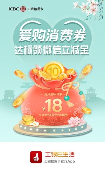 提供团购消费、商户优惠消费、工行卡优惠、电子券抵扣等多种优惠消费方式;