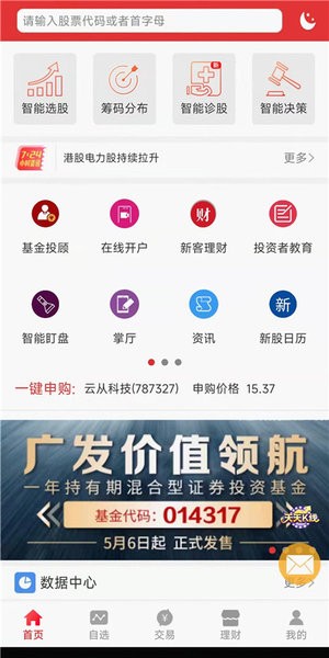2.全新首页、智能体验,智能荐股、智能诊股、智能决策、三大模块全新升级,智能投顾之旅从此开始;