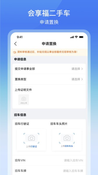 会享福二手车商户版最新版是一款专门为旗下商户提供二手车交易买卖管理服务的应用平台,集车辆置换、车辆检测、车辆管理等功能为一体,轻松查询工单信息,还可以管理员工,即时统计报告数据,了解详情,快速高效进行二手车交易!
