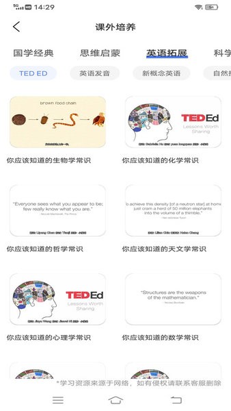 2.适合中小学生的专业课程都在平台上线,课程种类繁多;