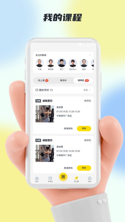 通过软件找到各种班课、训练营和私教信息,体验不同的运动过程