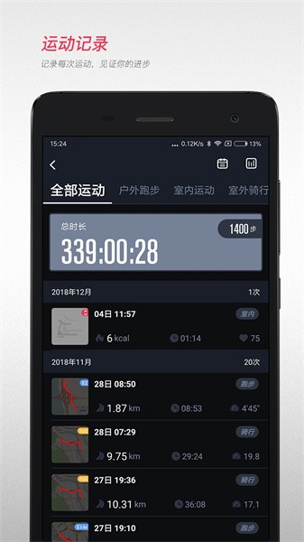 2.可以随时去查看到自己每天的跑步记录记录的内容,非常的完善。