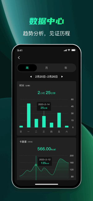 5、数据中心,统计锻炼情况,对自己的锻炼结果一目了然。