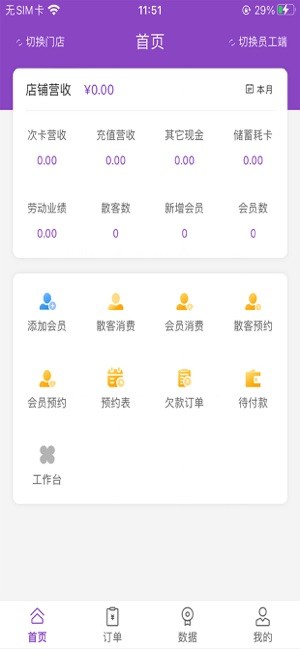 2、店家使用APP、电脑端、IPAD端进行会员管理、开单收银、开卡耗卡、工资计算、客情维护、电子预约本、共享股东、老带新等功能。