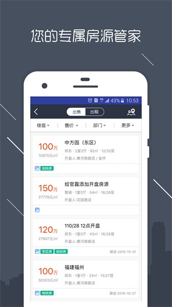 3.可按楼盘、售价、部门等信息快速出售房源;