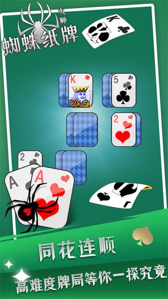 非常经典的纸牌游戏,这款游戏玩法简单,玩家需要将牌从k到1进行排列即可消除,当所有牌消除干净之后即可通关。蜘蛛纸牌关卡非常多,难度则会随着关卡的提升而变难!