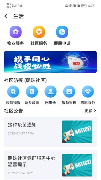 目前主要使用的是基于“君伴生活服务平台”所延展的居民健康管理系统。该系统将从居民健康数据管理、健康数据分析、健康状态预警等三大方面着手,一方面辅助物业、社区实时了解全民健康数据;另一方面,为社区居民提供4S健康管理服务,让每个家庭和每个社区居民拥有健康的生活。