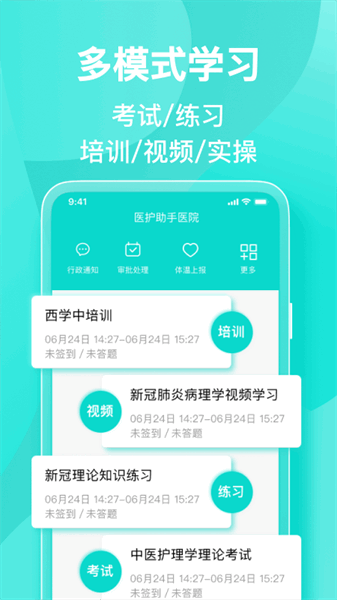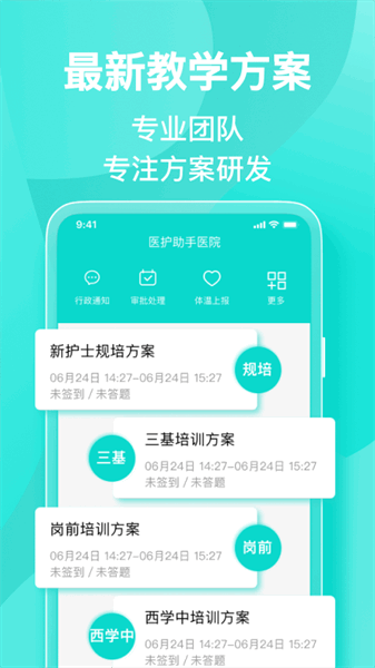 医护助手app是专为广大医生护士制作,软件拥有在线学习,现场培训,签到,数据分析等等功能服务,医护培训、学习、练习的神器,简化医护工作,提高医护培训效率,海量数据分析医护培训效果,实时跟进医护工作细节,每一次的改进,只为让医护工作学习更简单。