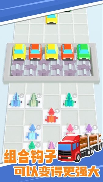 飞钩合并手机版是一款超好玩的休闲游戏,操作简单又有趣。玩家通过合并钩子变得更强大,拖着各种汽车往粉碎机里扔,挑战越来越重的车子和关卡,成就感满满。游戏画面清新,色彩对比明显,操作直观,适合快速上手。