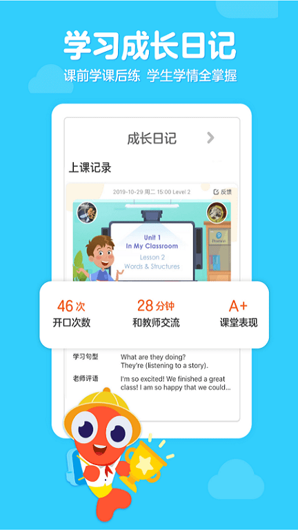 4、具有学习成长日记,更好的记录孩子的学习情况,在线就能够清楚的进行查看;
