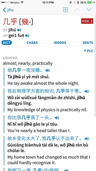 通用于大陆/香港/台湾: Pleco全面支持简繁汉字,词目发音可显示注音和拼音,甚至还支持粤语。