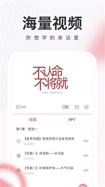 同步2022注册税务师权威考试大纲,按章节系统学习,360度无死角学习,2022全新录制视频,支持离线下载,清晰度选择,别人每天赶着去上课,我们我在家里用手机学习。
