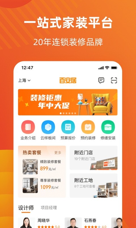 百安居,提供最优质的建材装修服务方案,软件拥有多年行业服务经验,充分了解过国人的家装需求,为无数家庭提供了令人满意的一站式整体家装方案,在这里你可以便捷查找到家装灵感,打造出属于自己的温馨小家,有需要的用户可以下载使用!