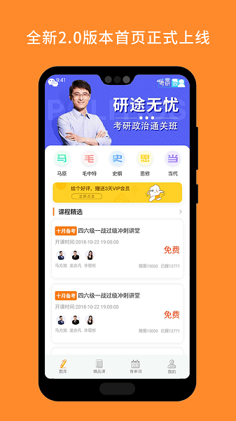 考研政治软件是非常好用的一款让正在考研的用户们快速的学习考研政治的手机app,在这里用户们能够找到非常多专业的考研政治课程进行学习,还有非常多的的模拟考试试题进行使用,让用户们能够在这里进行模拟考试,强化自己的弱项,超级的好用。