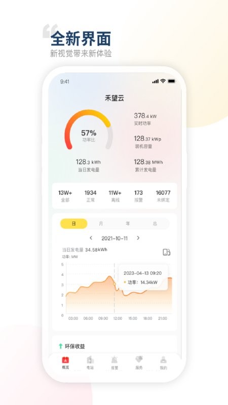 禾望云是一款提供电站的运营分析和移动运维服务的移动监控软件,软件提供的主要功能包括:数据概览详情、