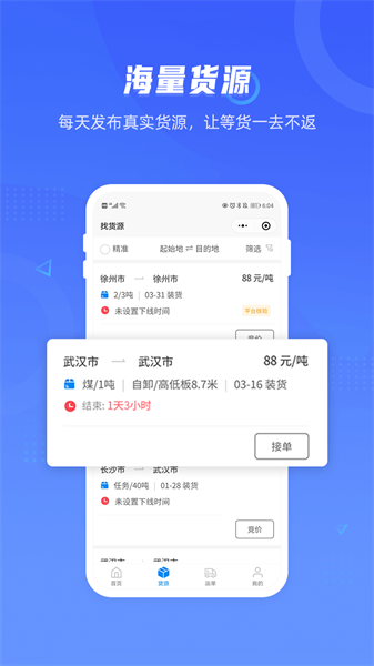 3、为用户提供科学的、人性化的线上找货、找车服务,并实现更为安全及快速的资金流转。