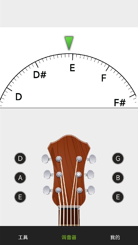 使用时,将手机靠近吉他,依次弹拨各个弦来测各弦音。