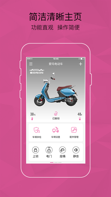 在应用中就能对电动车进行管理和操控,轻轻一点就能控制;